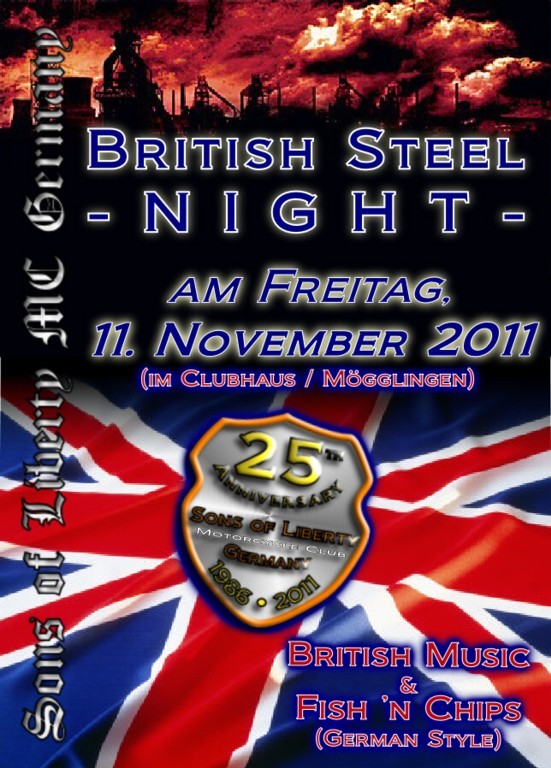 Am 11.November 2011 kamen viele Gäste um mit uns die erste British Steel Night im Clubhaus zu feiern.